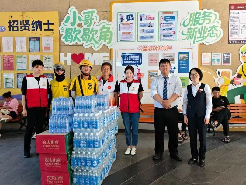 街道协调、物业布线,智能换电柜在街角整齐排开,还有一箱箱爱心商户捐赠的矿泉水,让外卖小哥送单更安心、更暖心。