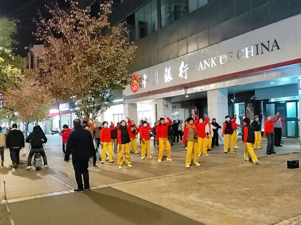 舞队欣然迁往新场地,音响方向朝内;原区域计划增设座椅花箱,商户夜间客流逐步回升。