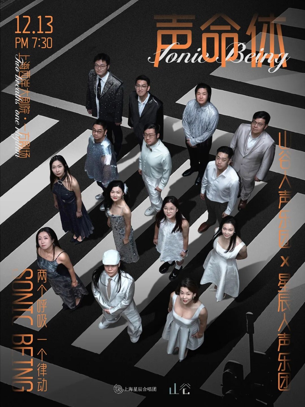 12月13日19:30,“声命体:两个呼吸,一个律动”山谷×星辰阿卡贝拉联合专场将登陆一方剧场。纯人声无伴奏的演绎形式,融合古老圣咏与现代流行、爵士曲风,用最本真的声音传递音乐力量。