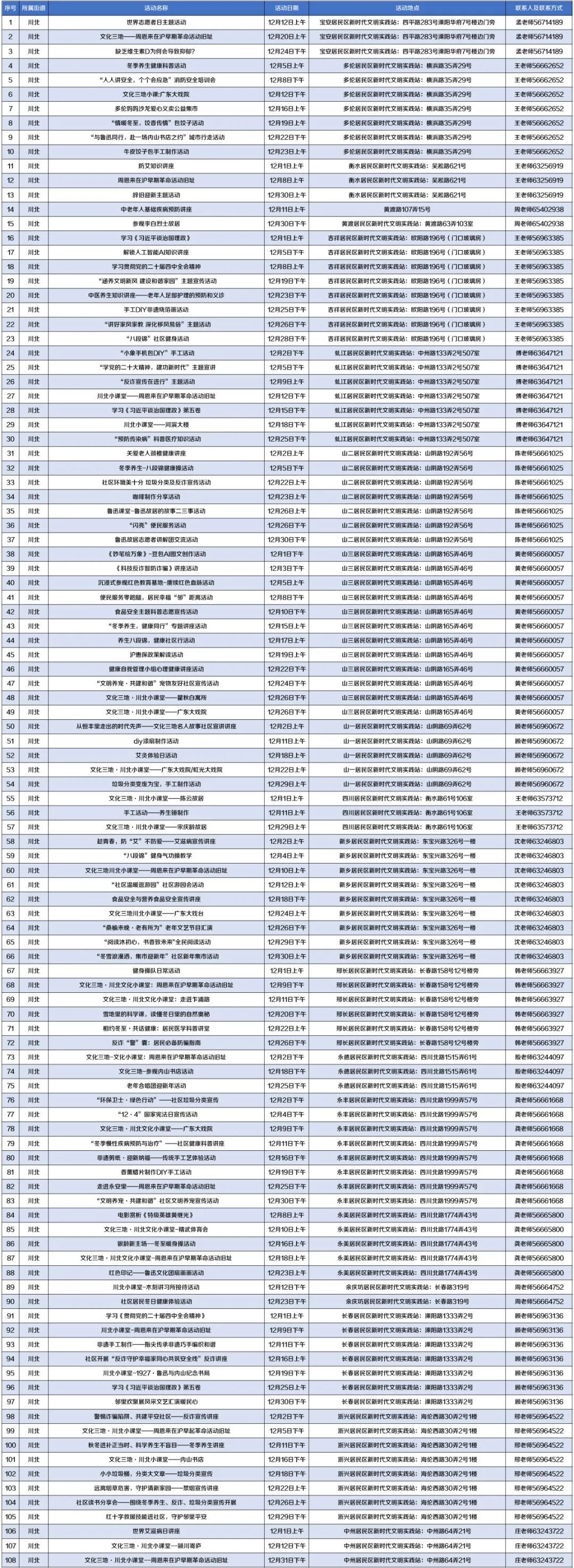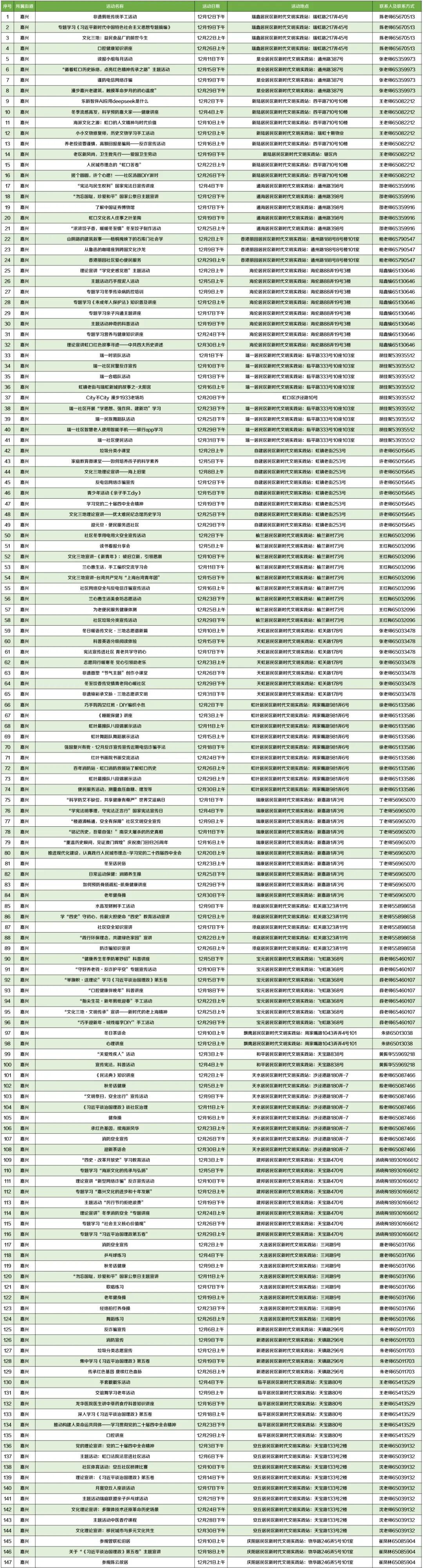 *具体活动时间和地点以各街道、居委实际安排为准。