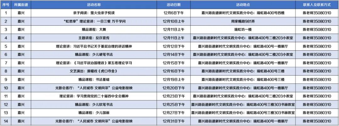 12月活动安排