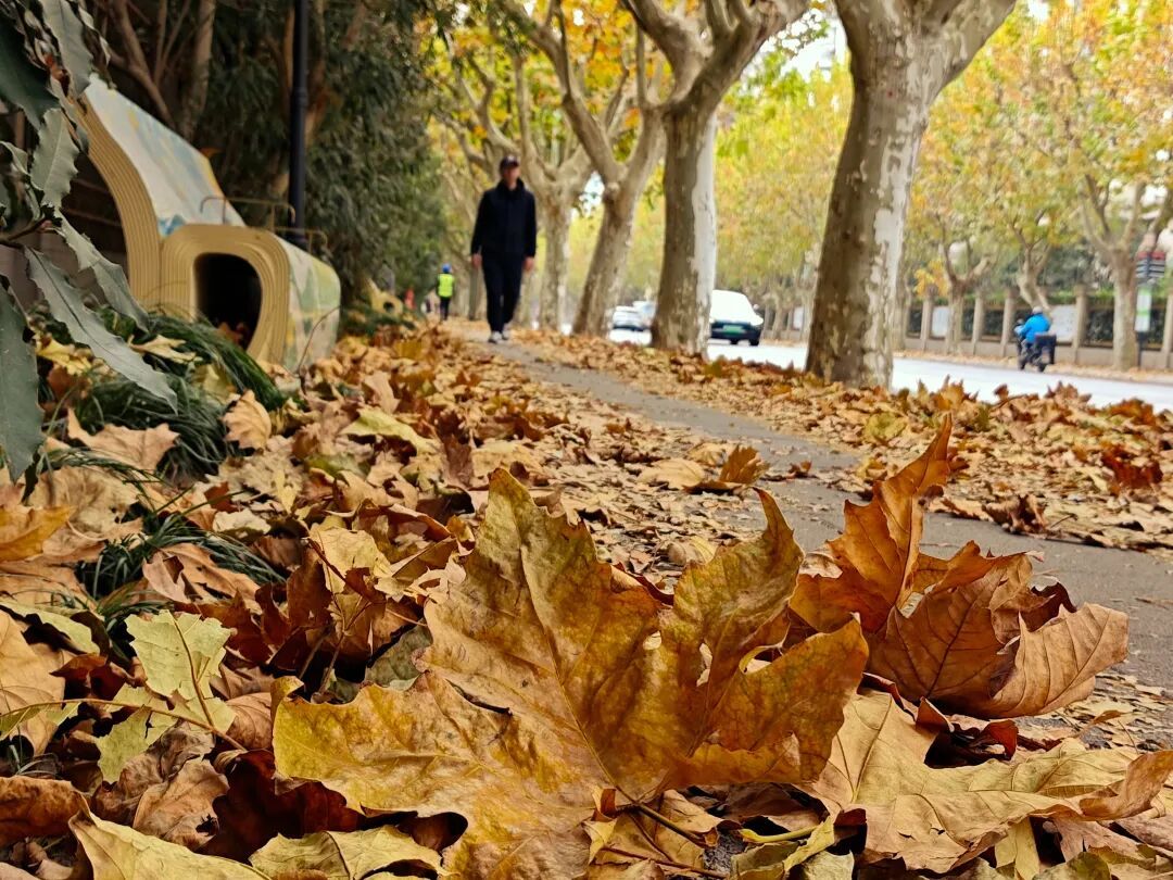 “‘不扫’不是不管了,其实恰恰相反。这半个月,我们眼睛要更尖,手脚要更勤,把‘落叶’和‘垃圾’分开,这比一扫帚全扫掉费心多了。要是碰到下雨或者刮大风,那得第一时间把湿叶子清干净,最终目的是让市民舒舒服服、安安全全地赏秋。”