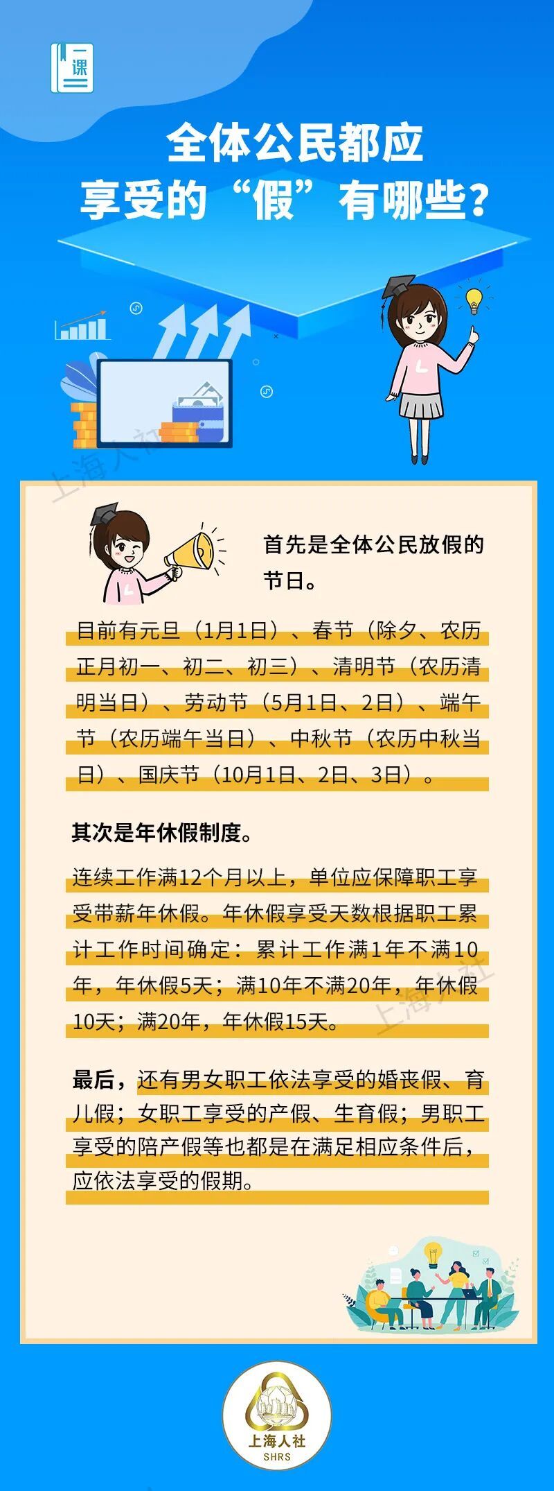 小凯今年大学毕业后,11月入职一家化工企业。上个月他在朋友圈刷到一条消息“收藏!2026年法定节假日加班工资日历出炉!”,上面列出了明年法定节假日遇加班怎么支付加班工资。后知后觉的他发现明年春节有9天休息,开心的同时他也想知道,全体公民都应享受的“假”到底有哪些?一起来了解。