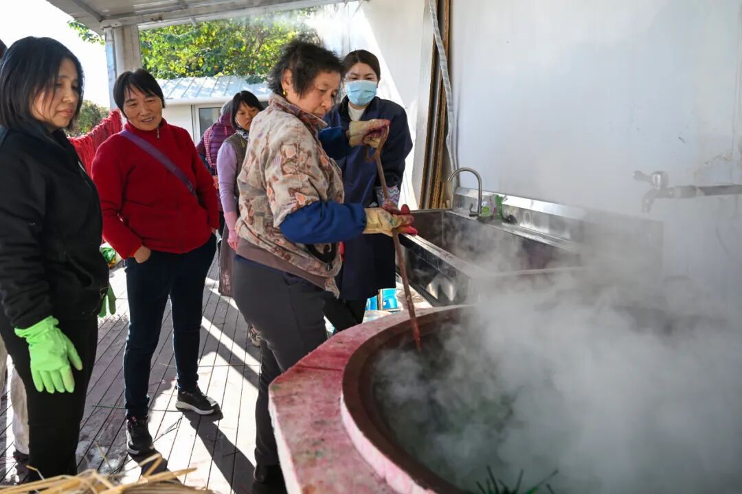 “以前最多一天染一千多斤黄草,队伍能排20米开外呢!”平秀娟感慨道,如今村民来染色的少了,现在2-3个月一次,凑够数量再开锅。