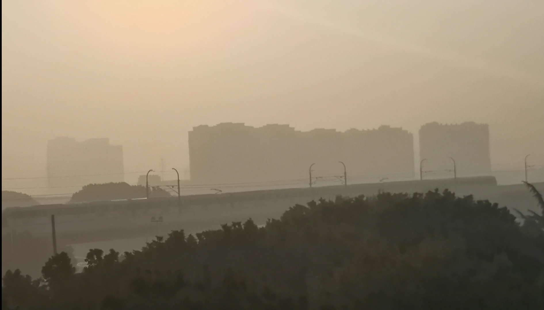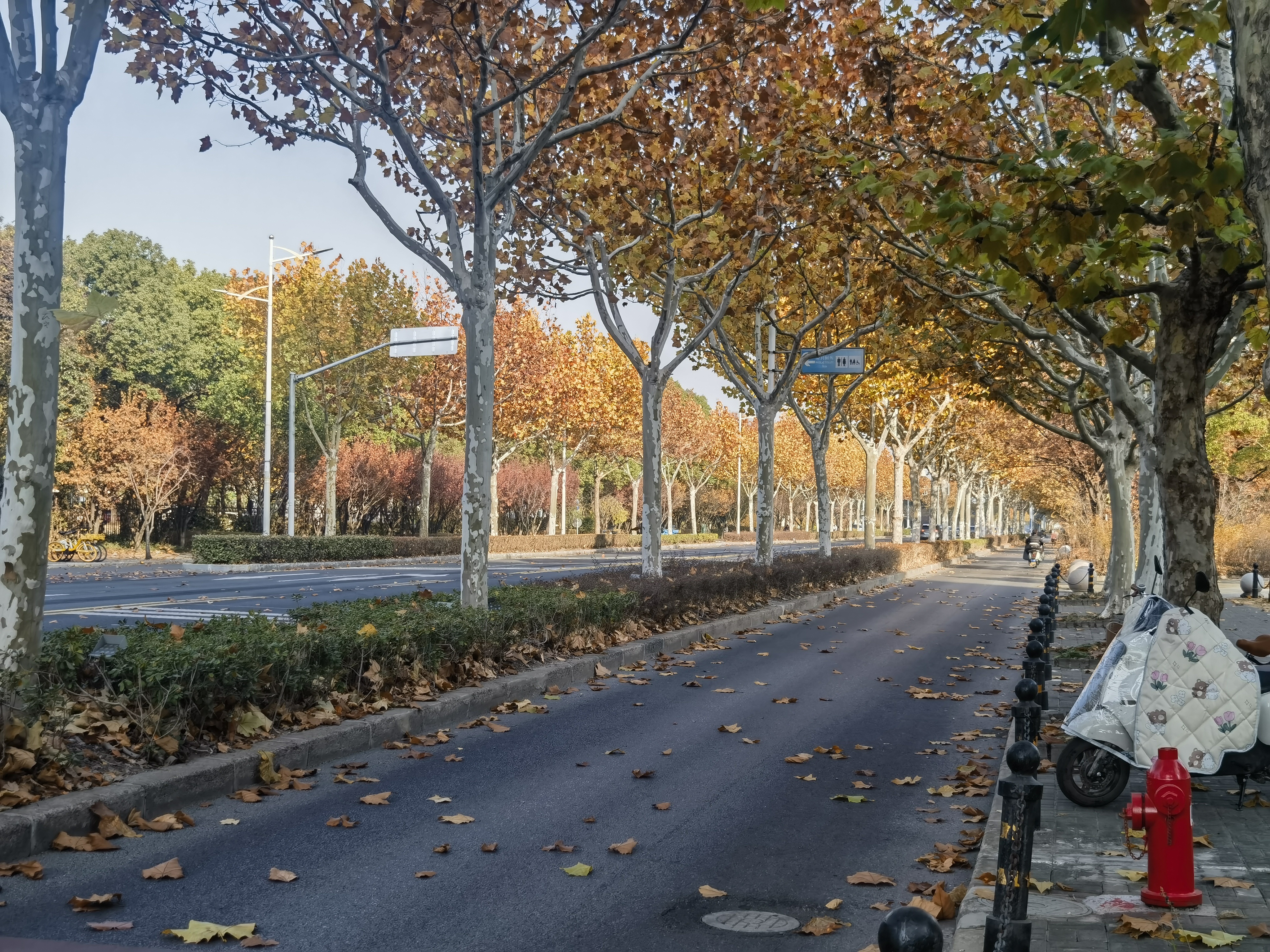 今晨的松江天色灰蒙,整座城市被雾霾笼罩,轨交9号线在松江大学城段运行时犹如在仙境中穿梭。上午9时半,风力增大,雾霾渐渐散去,道路两旁的行道树簌簌作响,街头到处可见落叶纷飞的秋日景象。“带着小朋友出来玩,这风一刮,树叶到处落,看着挺漂亮的。”市民任女士说。