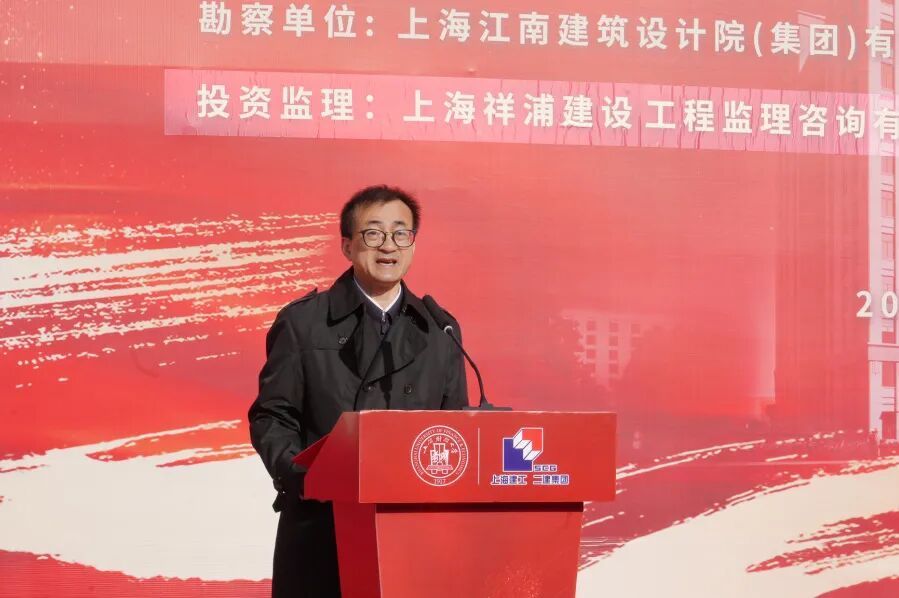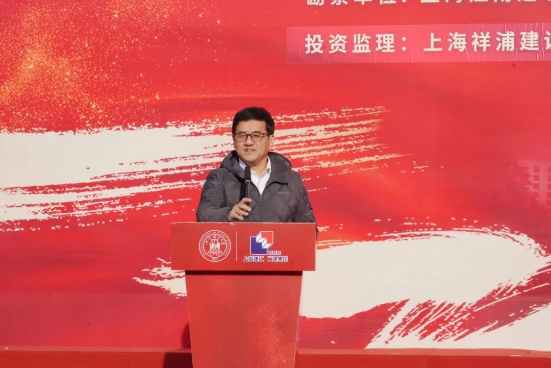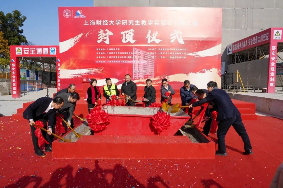 上海财经大学党委书记许涛、校长刘元春、副校长姚玲珍、校党委常委、宣传部长曹东勃、杨浦区重大办研究生教学实验综合楼项目负责人沈雄峰以及各参建单位负责人代表出席封顶仪式。仪式由刘庆生副校长主持。