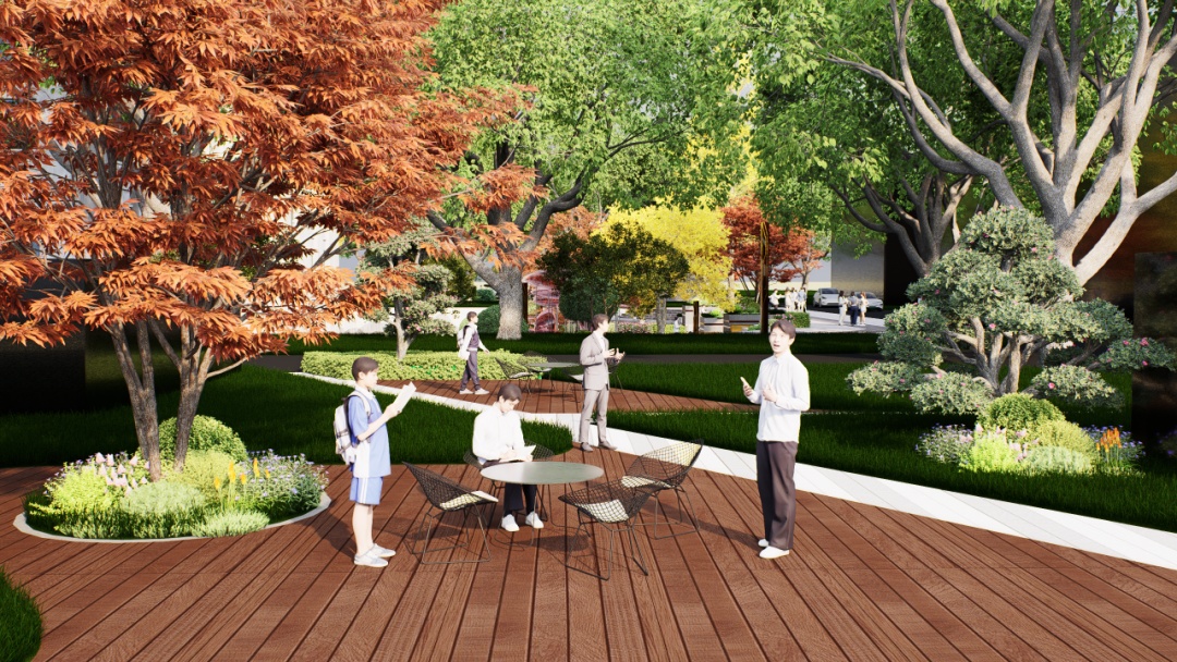 按规划,综合楼配套下沉式广场将同步启动景观设计:通过科学布局绿植,让自然绿意与人文建筑深度融合,既重现生态活力,更以景观叙事打造可感知、可互动的校园空间。