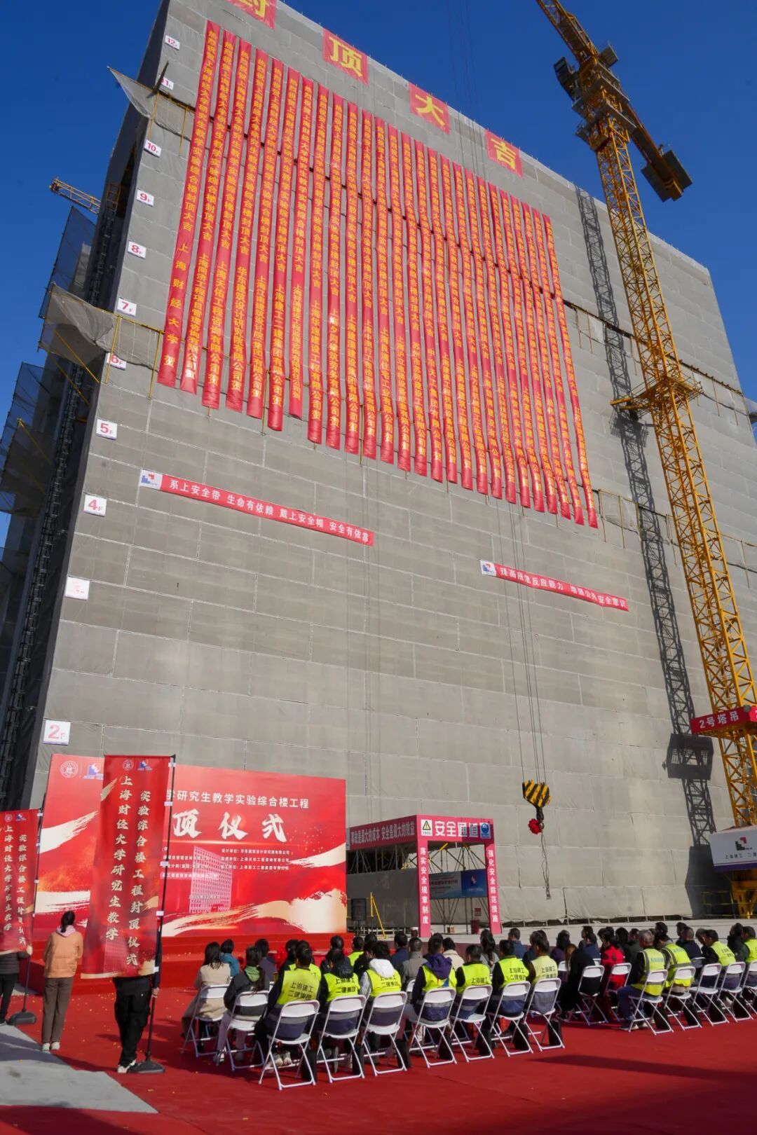 12 月 8 日上午,上海财经大学研究生教学实验综合楼封顶仪式顺利举行。学校领导与相关部处负责人、杨浦区主管部门项目负责人及各参建单位代表齐聚现场,共同见证这一重要时刻。