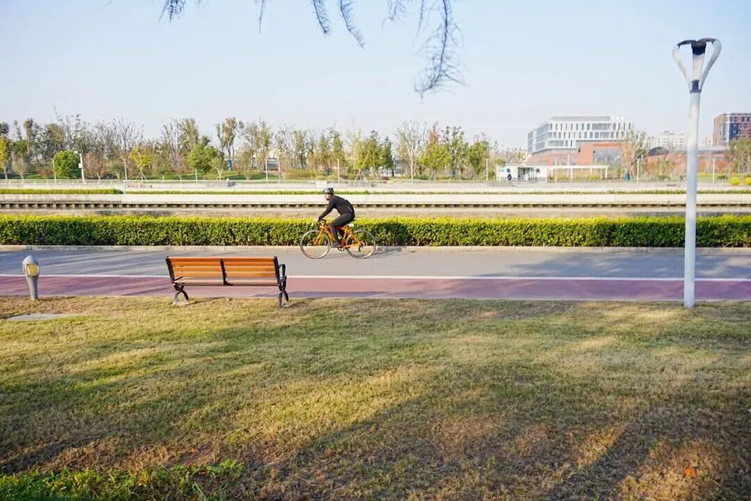 金色的银杏、红色的槭树、棕色的榉树、黄色的秋草……当下的上海,景色如油画一般浓郁,如阳光一般灿烂。长宁临空园区的景色随着临空音乐公园的恢复开放,串联成一条从苏州河滨河步道到外环生态绿道不中断的赏景路线,一起来欣赏吧!