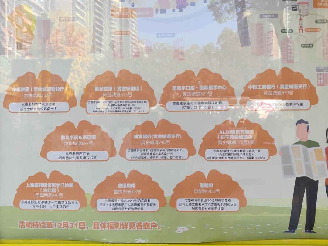 社区商业的公益赋能更让善意落地生根。黄金城道上的8家商铺获授“志愿友好商铺”称号,涵盖助老服务、医疗健康、金融服务等多个领域。本月底前,实名注册志愿者凭服务时长证明可享受专属福利,这种“公益+商业”的联动模式,让黄金城道不仅是休闲街区,更成为善意流动的“爱心长廊”。