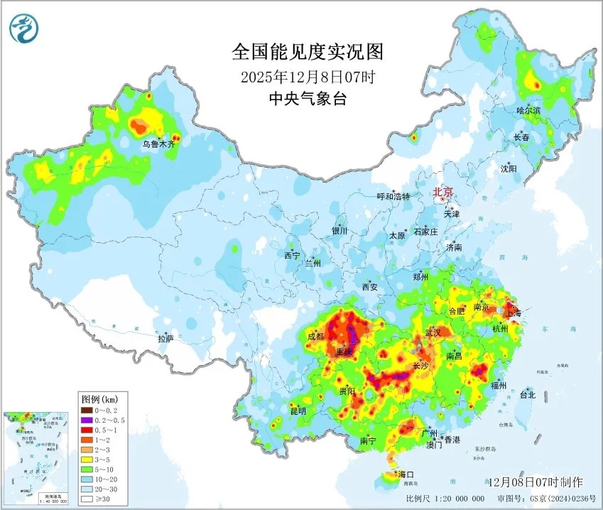 受辐射降温影响,今晨大雾开场,大部分郊区出现能见度低于500米的雾,崇明、宝山、松江个别站点最低能见度不足100米。随着日出到来,雾气快速消散。