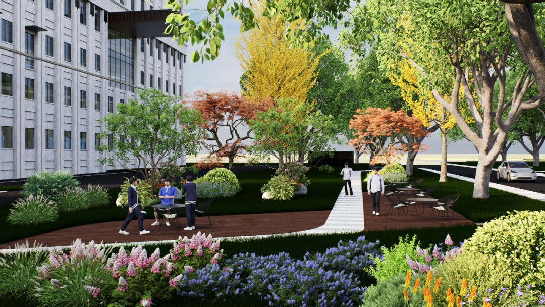 按规划,综合楼配套下沉式广场将同步启动景观设计:通过科学布局绿植,让自然绿意与人文建筑深度融合,既重现生态活力,更以景观叙事打造可感知、可互动的校园空间。