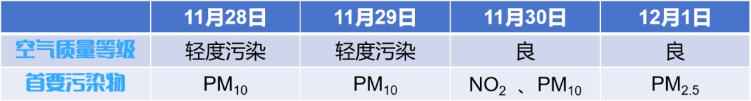 2025年11月28日—12月4日,徐汇区大气环境质量报告如下所示: