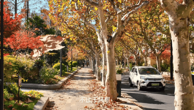 穿梭在三条景观道上,捕捉不同光影下的落叶特写。