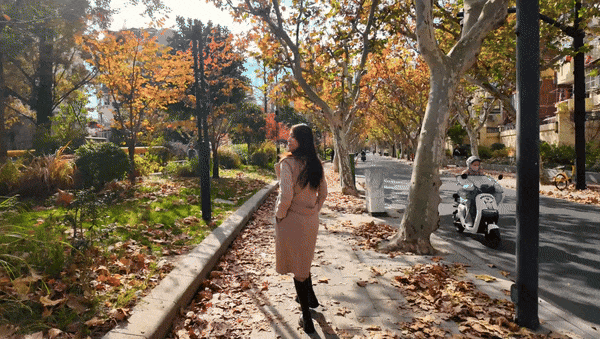 逆光下的金黄透亮、侧光中的层次分明,还有光影在落叶道上,缓缓移动的轨迹。