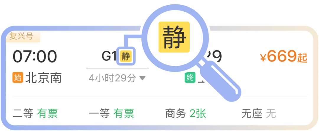 旅客在购买火车票时,可选择购买带有“静”字标签的车次,在确认订单页面勾选:请优先为我分配“静音车厢”席位。即可在静音车厢有余票的情况下,选乘静音车厢,享受更加安静的乘车环境,目前已有90多列动车组列车设有此类车厢。