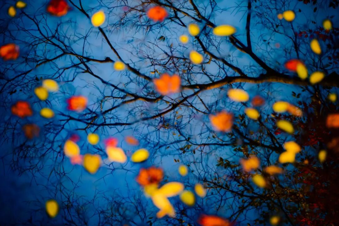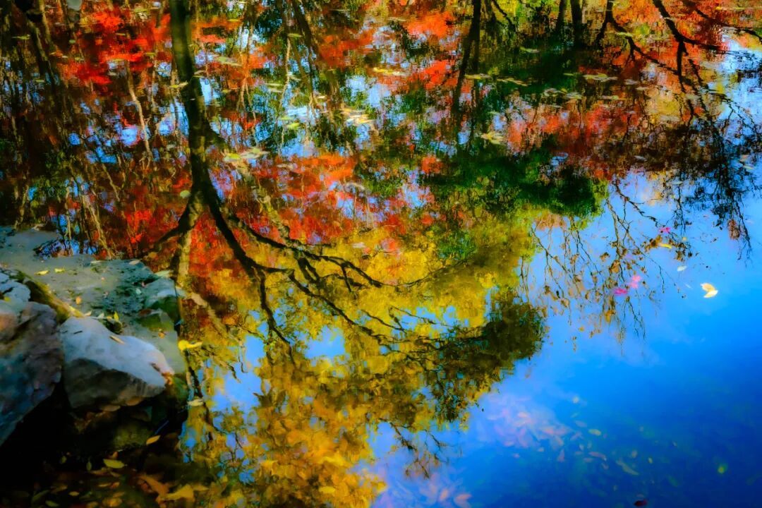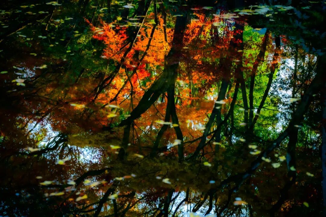 不再只关注现实中的实景,而是把视角放在了水中的倒影,这样水面就像一块画布,所有的色彩都在水面铺陈开来。
