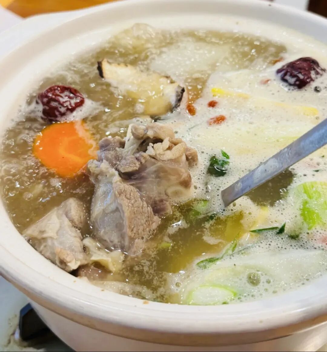 羊肉是纯正的西北羊肉,一点膻味也没有,药膳羊肉煲里还加入了八种中药材,和新鲜的羊肉一起炖煮,喝上一口汤从嗓子暖到胃里。