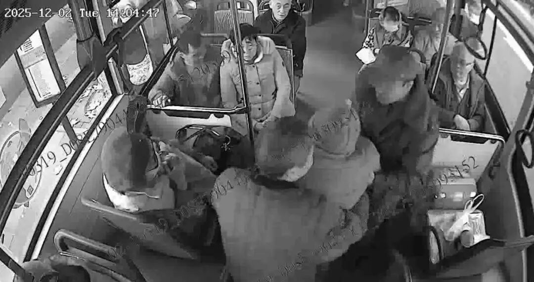 家属搀扶老人站起后,陈平与家属一起,小心翼翼地抱起阿姨,将她平稳地送上车辆。整个过程干练却不失温柔,既顾及老人的身体状况,也确保操作安全可靠。车厢内的乘客见状纷纷侧身让道,前排两名乘客主动腾出座位,将最方便的位置留给老人。