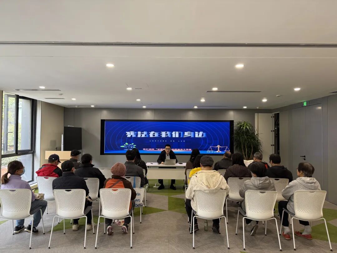 专题宣讲会上,徐汇法院法官助理王绍远与上海七方律师事务所律师秦利梅,分别带来了“宪法在我们身边”和“宪法守护你我他”的分享。他们结合邻里纠纷、权益保障等大家熟悉的生活实例,阐释了宪法如何保障公民权利、规范权力运行,引导居民尊法、学法、用法。