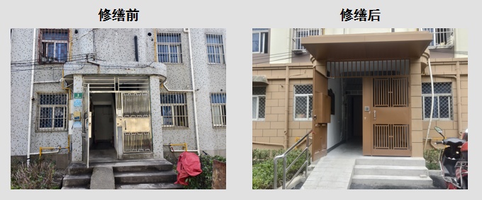 单元门及门头雨棚修缮前后对比