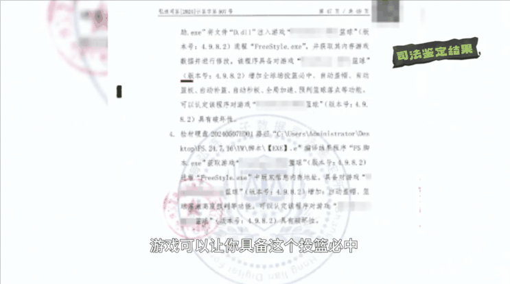 经鉴定,这些“脚本”“外挂”通过获取、注入数据手段,具备对游戏增加全球场投篮必中、自动盖帽、自动补篮、预判篮球落点等功能,对游戏具有破坏性。