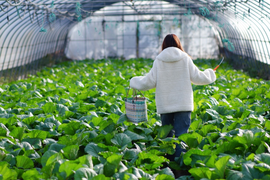 游客们提着小篮子穿梭在蔬菜棚间,亲手摘下一颗颗蔬菜,此刻仿佛已变成一个“小农民”。而这些 “新鲜出炉”的蔬菜,最后会按斤计价,价格相比商超要稍微实惠一些,买回家不管是清炒、凉拌还是做汤,都能尝到纯粹的田园风味。