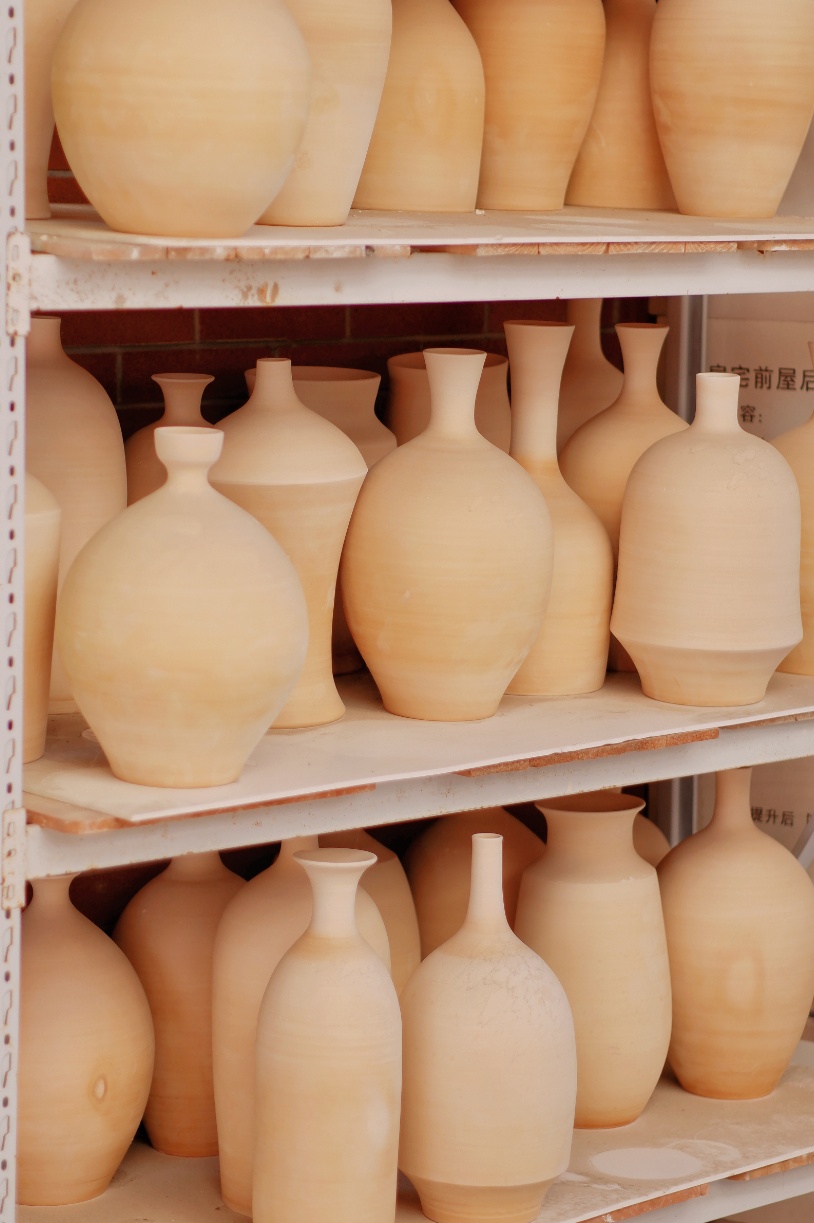 踏入金山艺术黑陶研究院,时光仿佛悄然慢了下来。院落里,各式各样的黑陶作品陈列在墙角、长廊与木架上,有的圆润古朴,有的线条灵动,木箱上整齐摆放着正在晾晒的学员作品。
