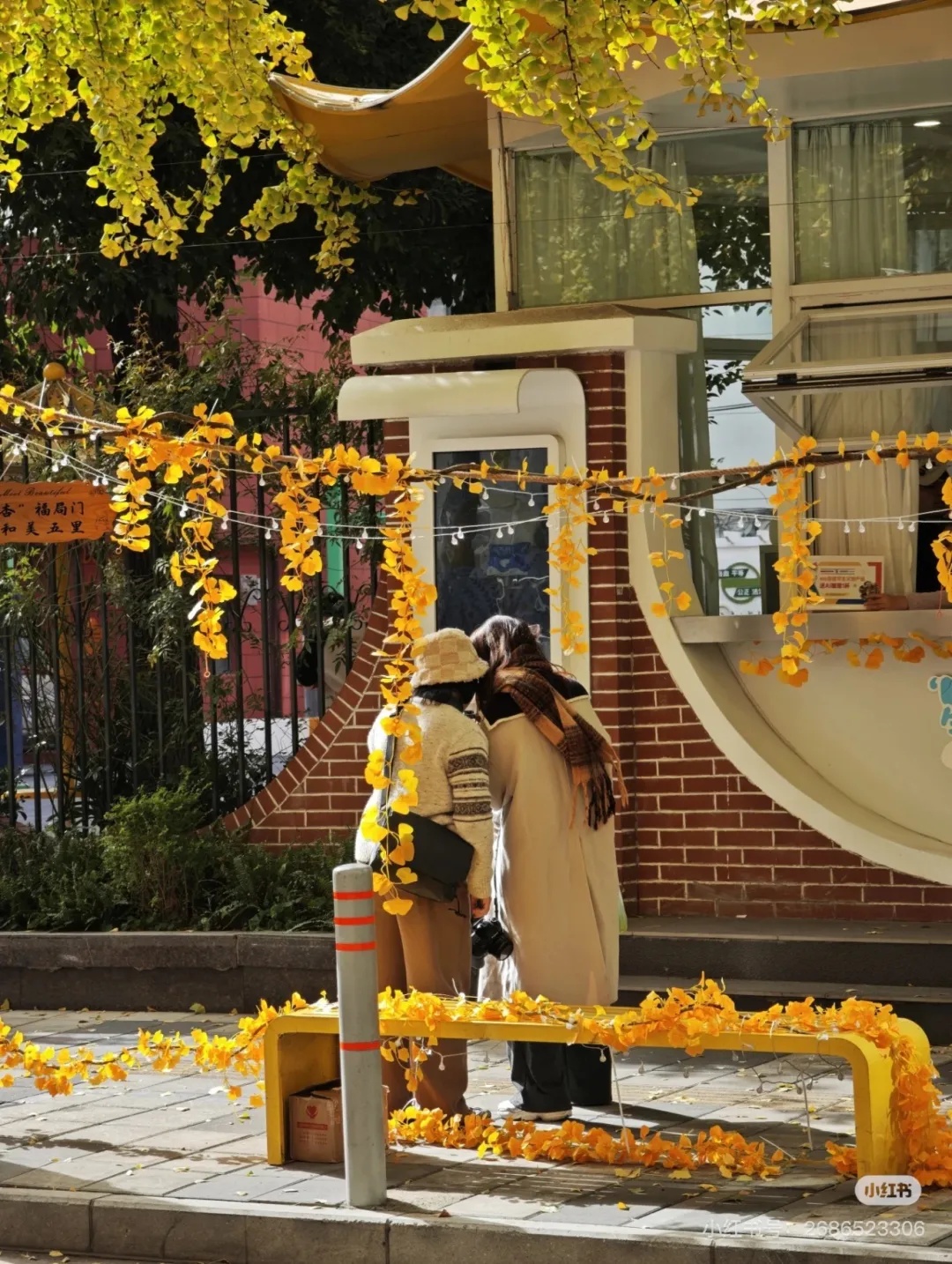 银杏叶交织成金色画框,
