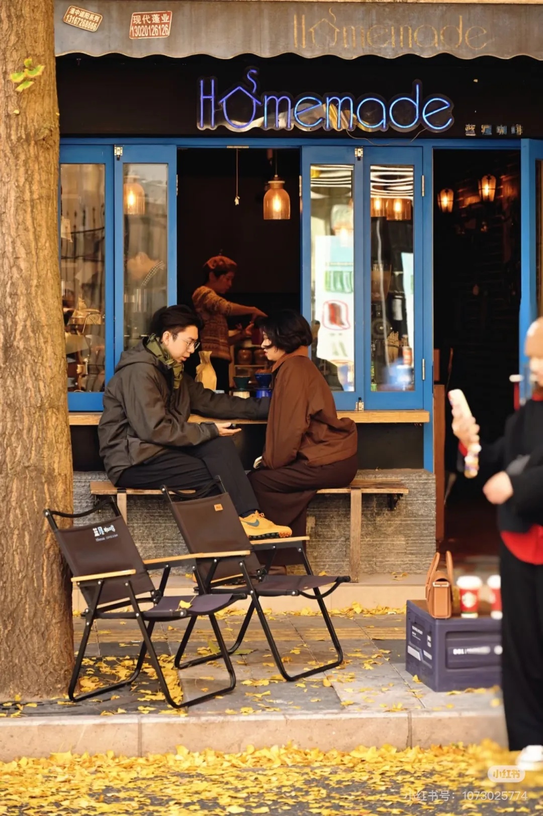 在银杏树下温柔相会。