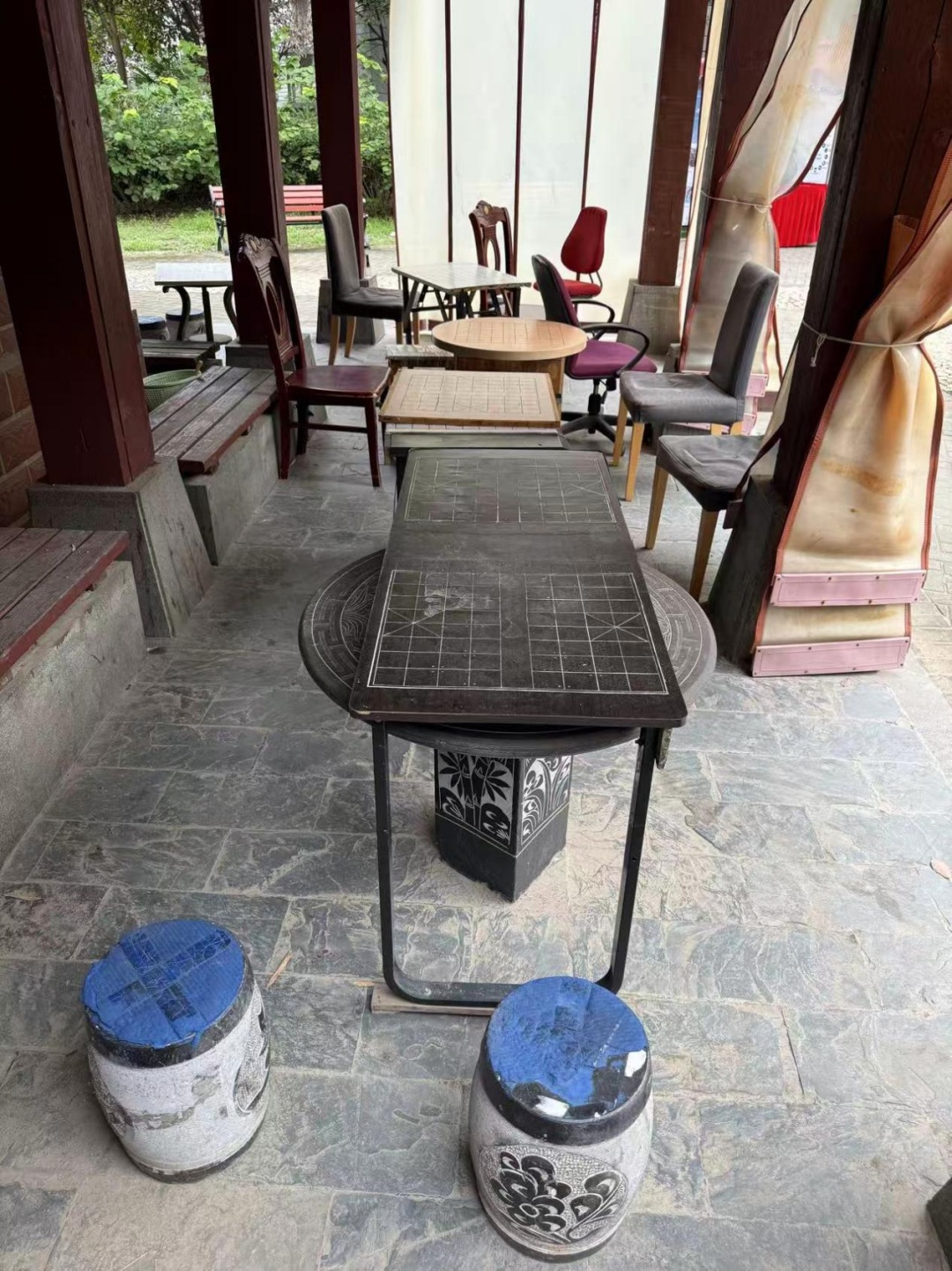 馨良苑小区作为建成近17年的动迁房小区,小区内部老年居民占比颇高。位于小区中心的花园不仅是居民日常散步的好去处,更聚集着下棋娱乐的爷叔们,是小区内最具烟火气的休闲地标。在小区建成之初,为了方便下棋,居民们曾自发添置了一批棋牌桌和座椅,但随着时间的推移,这些设施逐渐老化,问题日益凸显。木质棋牌桌陆续开裂变形,部分座椅摇晃松动,花园内的公共长椅也因常年日晒雨淋,腐蚀严重,露出木刺。“我们下棋时都小心翼翼地,生怕动作大点就会摔跤。”居民的担忧说出了大家的普遍心声。