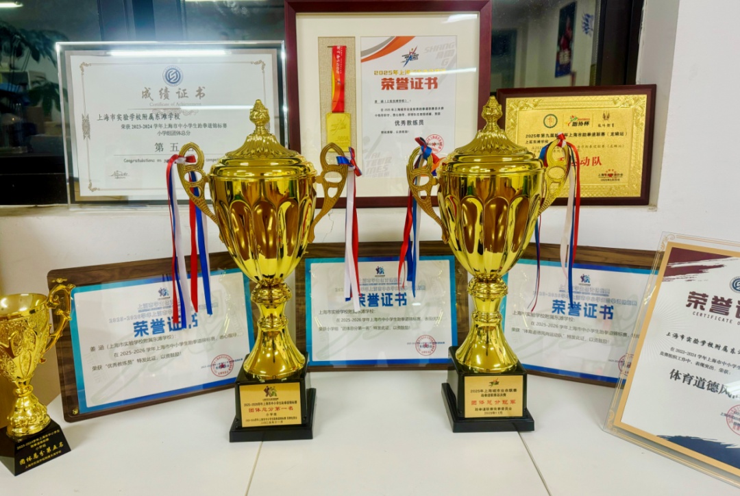 三年来,校队南征北战,参加了几乎所有上海市青少年跆拳道重要赛事。成绩单耀眼:累计金牌15枚、银牌13枚、铜牌12枚。今年,更是先后夺得上海市体育局主办的上海市跆拳道联赛总决赛团体冠军和上海市教育委员会举办的本学年上海市中小学生跆拳道锦标赛小学组全市第一名,收获“双冠”,并被授予“体育道德风尚奖”、“最佳运动队”等称号。