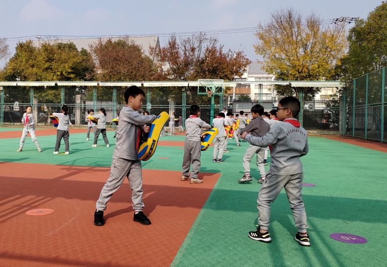校队的训练强度是出了名的。利用学校的课后服务时段,根据年级,分为小学组和初中组,队伍坚持每周训练2到3次,每次2至4小时,寒暑假还有校外集训。压腿时的酸胀、成百上千次重复踢靶的枯燥、体能极限时的窒息感,是每个队员必须跨越的门槛。