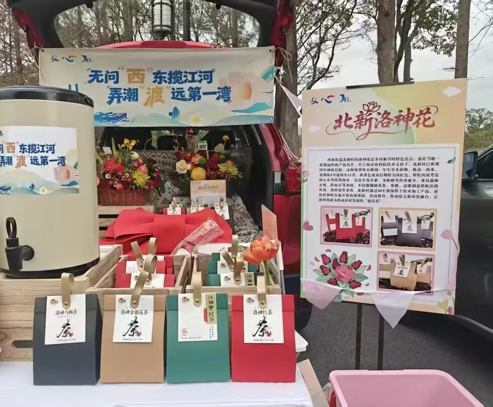 古银杏秋日金色的华冠,象征着收获与幸福。北新村积极擘画特色产业的繁茂生态。2025年启动的“杏福三分田”项目,以“党总支+村民+企业”模式,让资源破土而出。精心培育“花北北”洛神花品牌,打造健康花茶;与万怡然等企业合作,规划可食农业区,探索灵芝、牡丹种植,建设体验式“半亩闲田”;并借力本地的创客天地、影视空间、文旅基地等资源,让传统文化与新时代实践相融合。构建了“以农业种植为根、以特色产品为干、以文化体验为叶”的完整价值链。如同大树汲取天地精华,最终向世界展开一片金色辉煌,实现村级经济与品牌魅力的共生共荣。