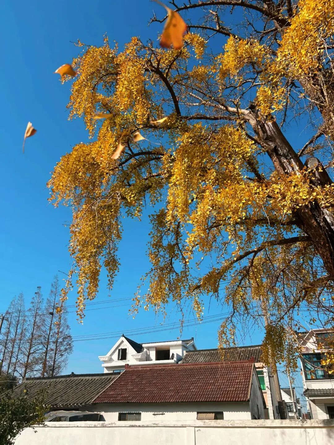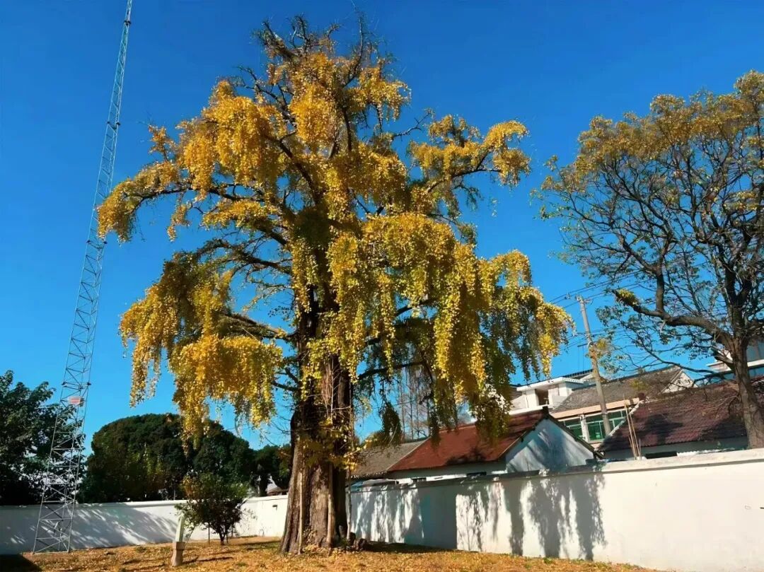 它坚毅挺拔,依旧年年抽芽吐翠,在岁岁深秋洒下灿烂夺目的黄金雨。树下铺满的落叶,将院落铺就成辉煌的金色殿堂。夕阳西下,轻轻踩着落叶,缓缓在树下漫步,如同摊开一部历史长卷。