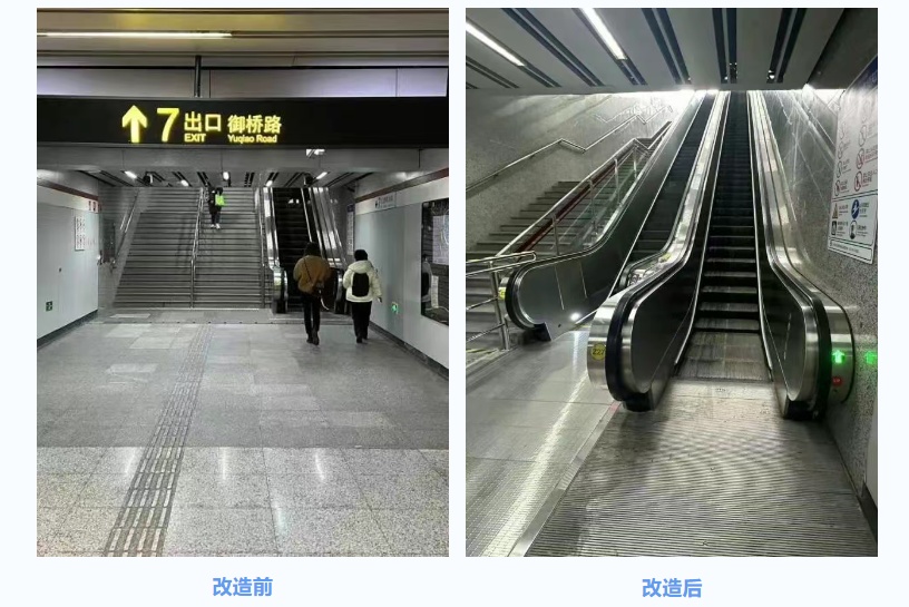 上海轨道交通11、18号线御桥站每日承载着大量进出站客流,早晚高峰时段尤为集中。此前,车站7号出入口仅配置楼梯及一部上行自动扶梯,携带重物、老年乘客等群体出行多有不便,存在一定安全隐患。
