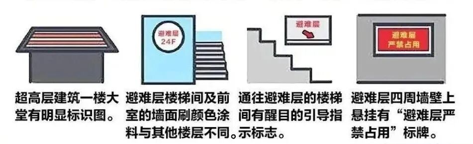 那么逃生时,我们如何快速识别避难层呢?看下图明了