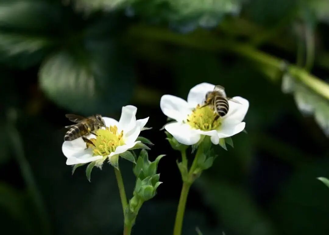 步入草莓大棚,清甜馥郁的果香扑面而来。放眼望去,翠绿的植株整齐排列,饱满鲜艳的果实点缀其间,宛如镶嵌在绿叶中的红宝石。前来采摘的顾客穿行在田垄间,俯身挑选熟度恰好的草莓,小心翼翼地放入篮筐。若仔细观察,还能看到秧苗的白色小花上不时有蜜蜂穿梭停驻,忙着授粉采蜜。果农指着角落的蜂箱介绍:“每个大棚都配置了蜂箱,蜜蜂授粉是保证草莓口感清甜的关键环节,这也是我们坚持的生态种植方式。”