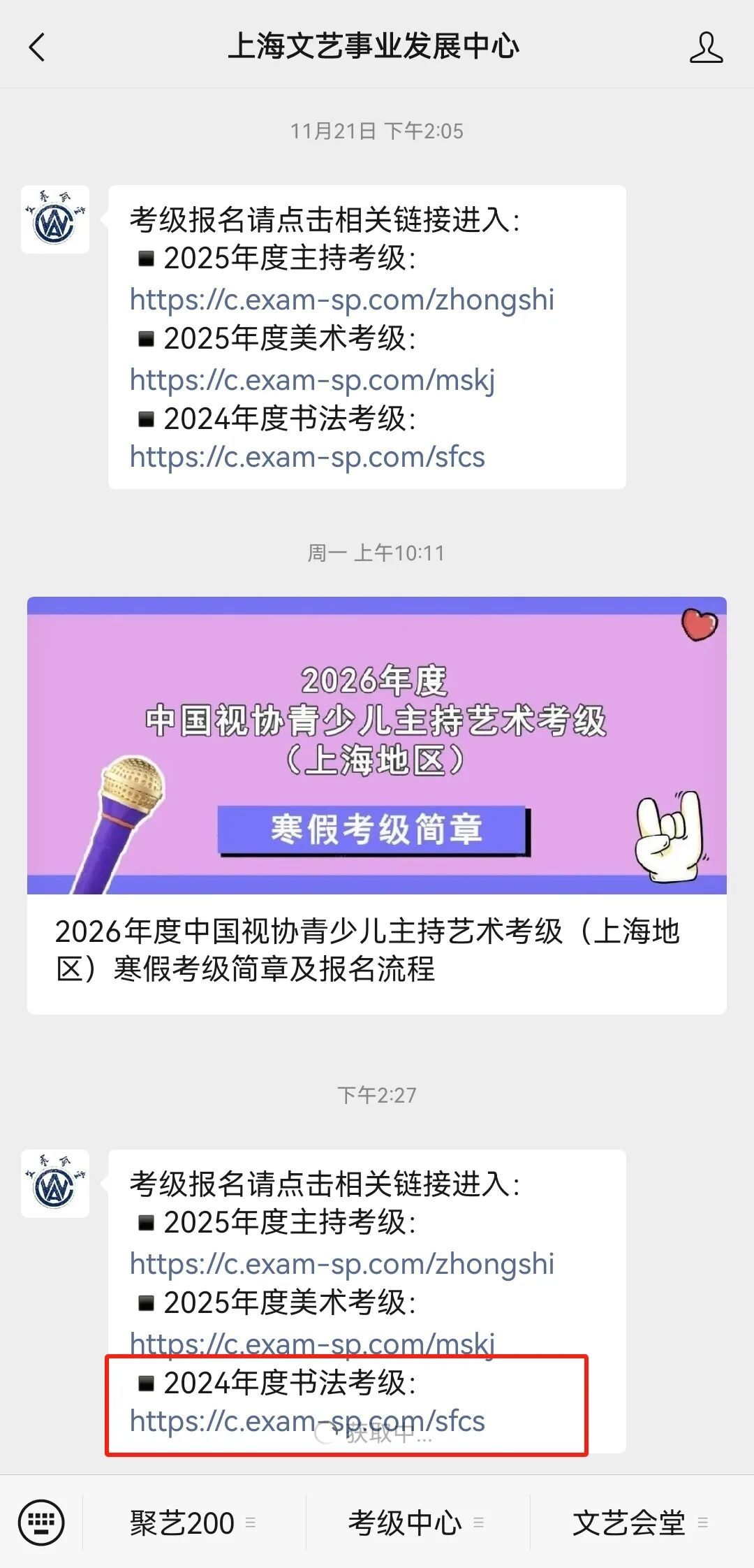 3.2025年度上海市书法家协会书法篆刻考级相关通知请考生及家长关注“上海文联”、“上海市书法家协会订阅号”及“上海文艺事业发展中心”微信公众号的相关推送;