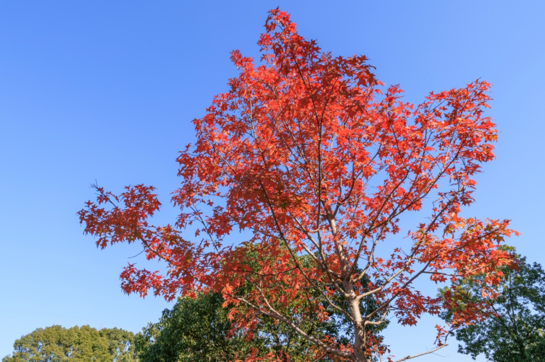 水是这出戏剧的镜框舞台,而娜塔栎,无疑是陆家嘴水环舞台上最耀眼的主角。它的红,不是一夜之间的蜕变,而是一场从容的浸染——从树梢的橙红,到树腰的绛红,再到阴影处深沉的酡红,每一片叶子都在诉说着不同的温度。