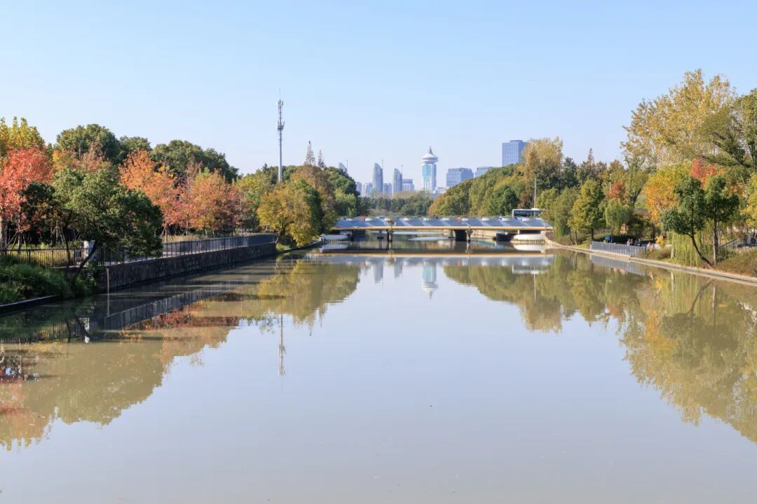 至于银杏,它们在不远处洒下片片金黄,如同散落的阳光碎片;乌桕则用它们紫红色的叶片,在水岸点缀出星星点点的惊喜。这些色彩共同编织出一幅层次丰富的织锦。