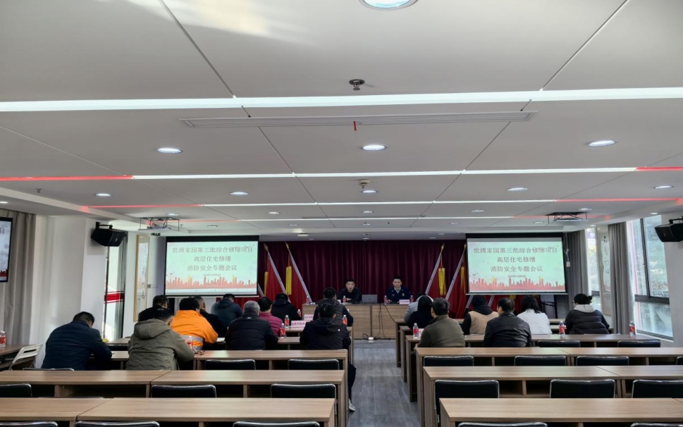 会上,区消防救援局首先向各参建单位传达上级关于消防安全工作的文件精神,通报近期消防检查发现的问题,同时部署高层住宅修缮期间的消防安全自查自纠工作与日常消防安全管理任务,确保现场火灾防范措施落实到位。