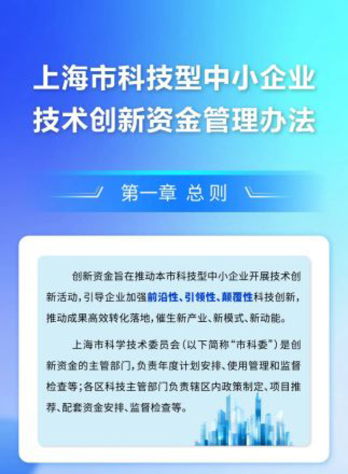 为进一步有效发挥上海市科技型中小企业技术创新资金引导带动作用,激发科技型中小企业创新活力和动力,市科委修订了《上海市科技型中小企业技术创新资金管理办法》(以下简称《办法》)。具体内容如下: