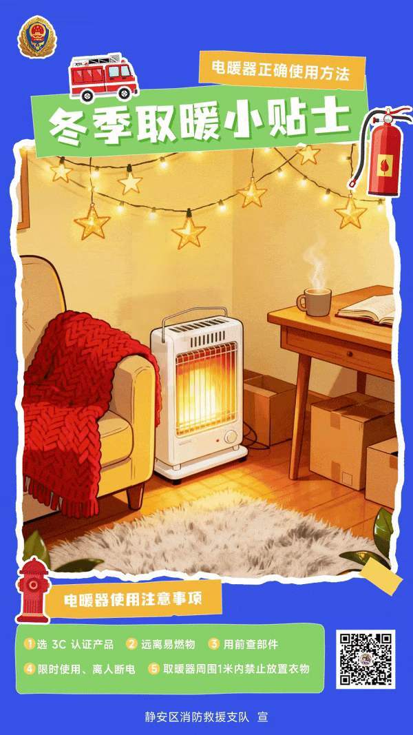 冬季天干物燥,取暖设备使用频繁,消防安全隐患随之上升。静安消防部门提醒,天气渐冷,务必绷紧安全弦,筑牢冬季消防安全防线,守护平安温暖过冬。