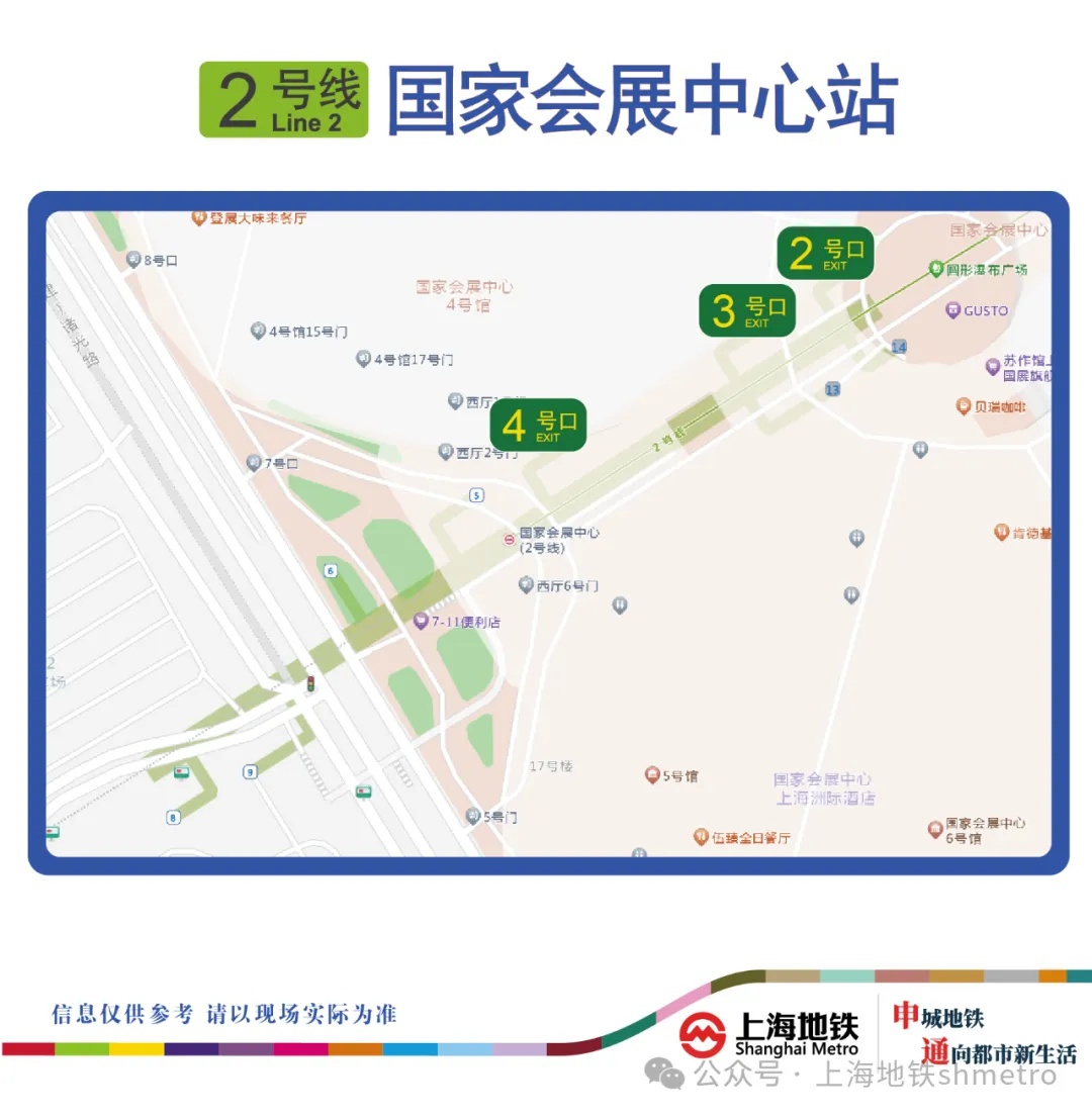 因配合国家会展中心改造项目,2号线国家会展中心站2、3、4号出入口临时封闭改造,预计将于2026年2月28日运营开始重新开启。在此期间,乘客可以通过其他出入口进出车站。