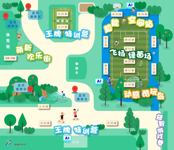 拥有了好场地,如何“玩”得科学、“玩”出成效?新普陀小学以“1+7+X”模式构建“趣”玩大课间活动体系,即以一张总体规划图为引领,七个主题区域为载体,叠加无限特色创新,形成一张兼顾整体与个性、涵盖全员与差异的运动网络。
