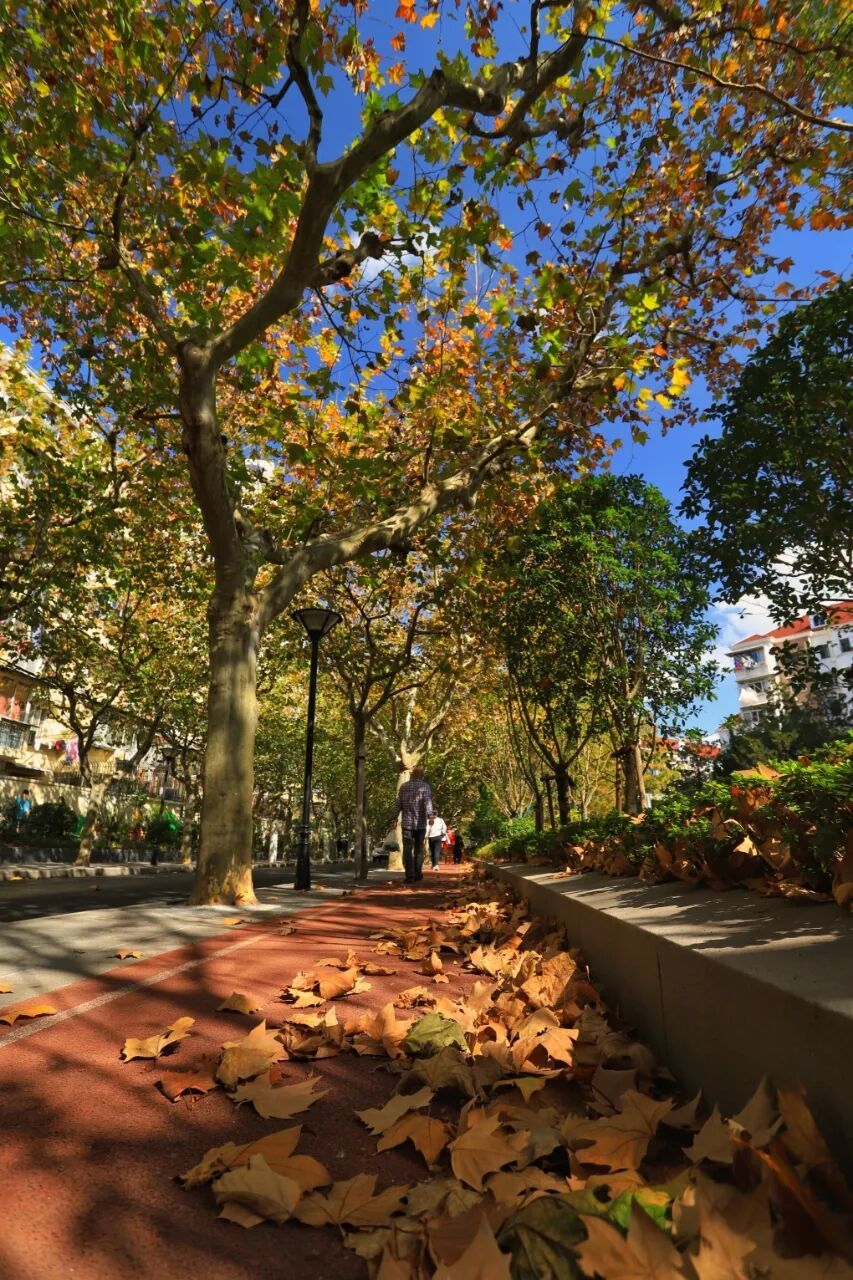 悬铃木是其中最熟悉的风景。作为区内主要行道树,二球悬铃木树冠开阔,春夏浓荫蔽日,入秋后叶片渐次转为金黄,与枝头悬挂的球果相映成趣,成为上海街区秋色的标志之一。在曹杨林荫片区,以曹杨公园为核心的11条道路连缀成荫,深秋时节,花溪路、桐柏路、棠浦路等地更实行“落叶不扫”,让市民踏叶而行,细品时光。