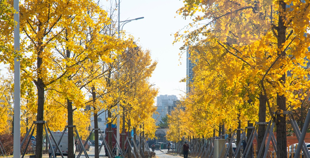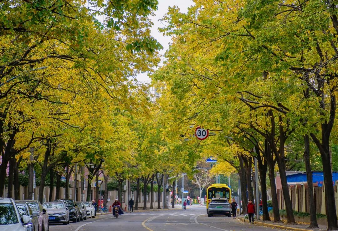 北石路、灵石路的无患子,以纯净的金黄传递着深秋的暖意;绥德路的栾树花果兼美,自夏至冬皆可观赏,持久而温柔。