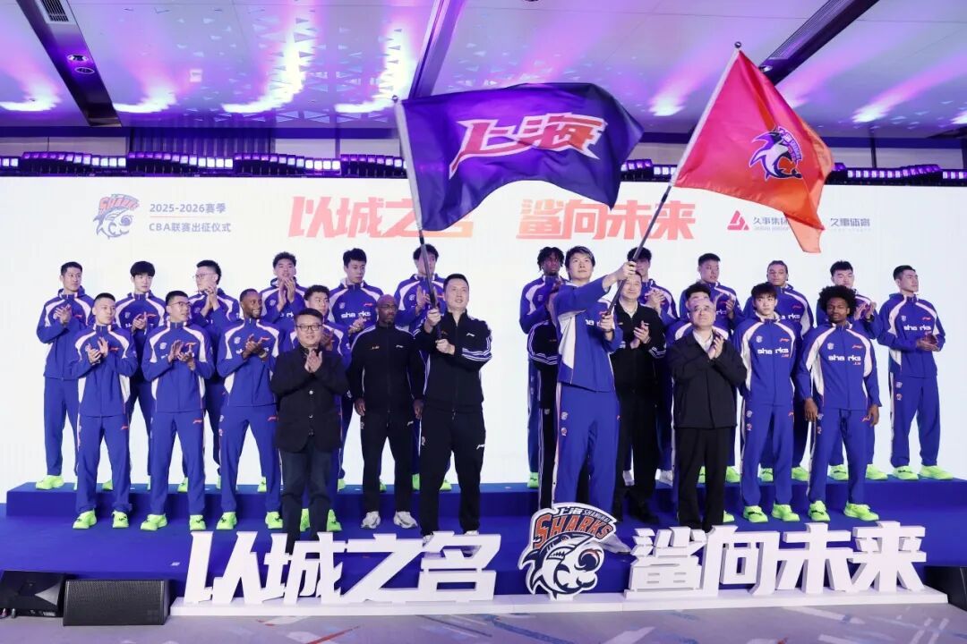 仪式上,俱乐部发布了三十周年纪念LOGO,它既象征着从初创走向成熟的历史积淀,更标志着而今迈步从头越的崭新起点。现场首映的新赛季宣传片,生动展现了一跃而起的“鲨鱼时刻”,点燃了全场激情。在备受瞩目的授旗环节,印有“上海”二字的出征旗与俱乐部队旗分别被授予主教练卢伟与队长王哲林。旌旗挥动,斗志昂扬,展现了球队为城市荣耀全力以赴的决心和信心。仪式上还对荣获上赛季“优秀场馆”及“优秀推广俱乐部”奖项的工作团队进行了表彰。球队全体教练员、运动员、合作伙伴、媒体及球迷代表等共同出席,见证球队在新征程启航的重要时刻。