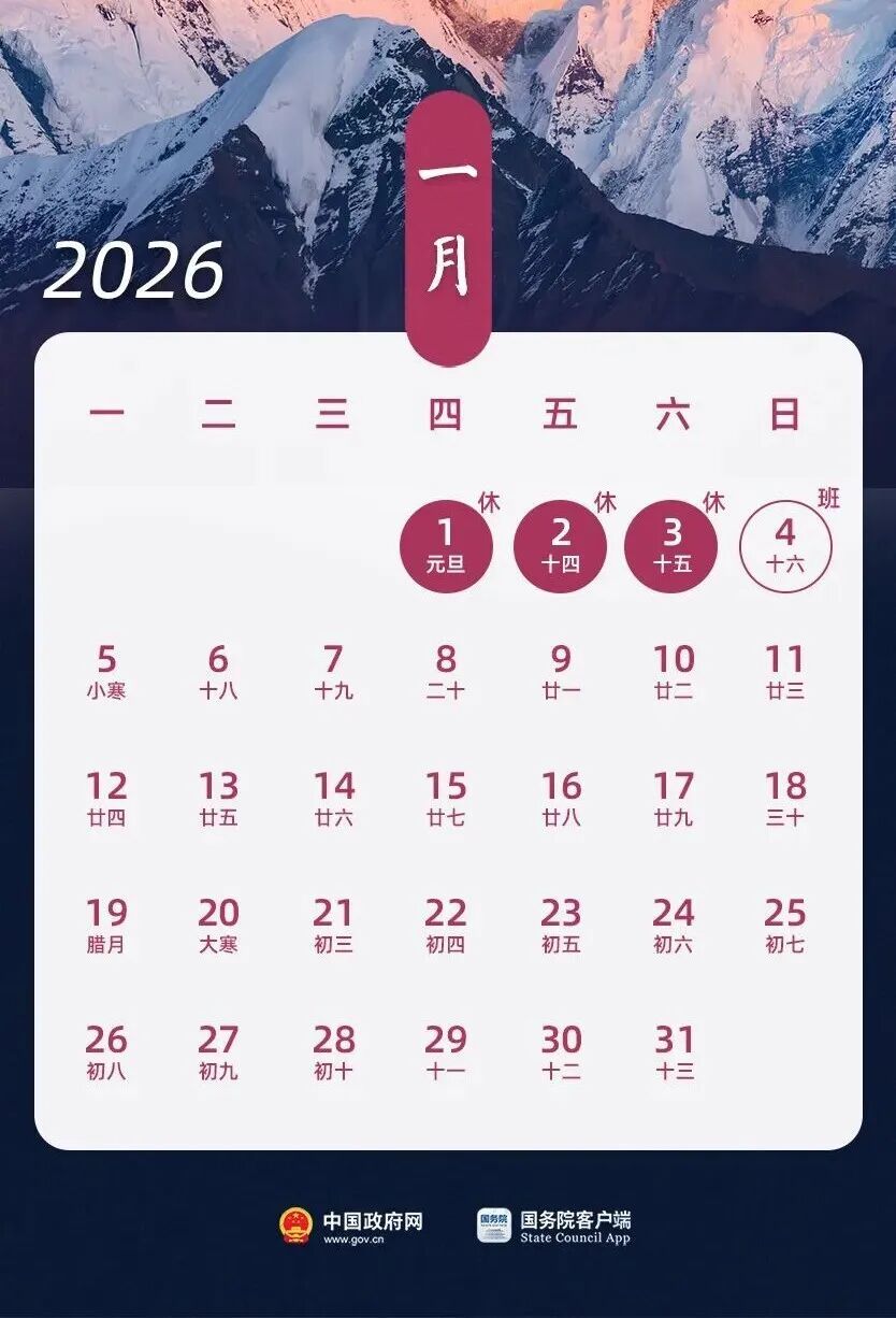 一、元旦:1月1日(周四)至3日(周六)放假调休,共3天。1月4日(周日)上班。